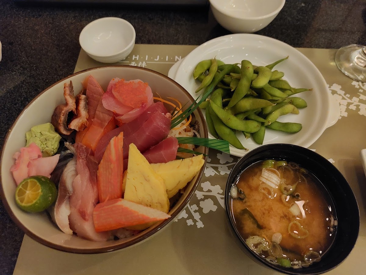 Perfect answer to one's craving for a Japanese meal. Hamachi head cooked well